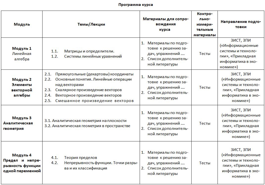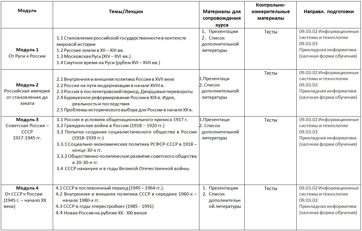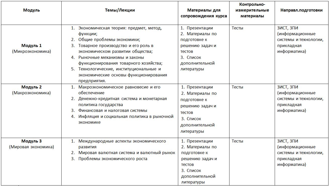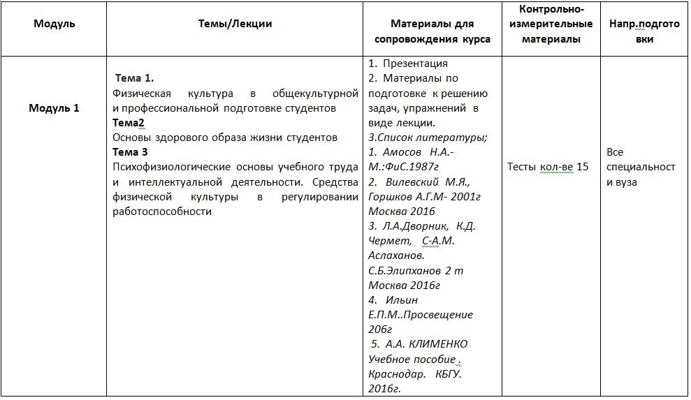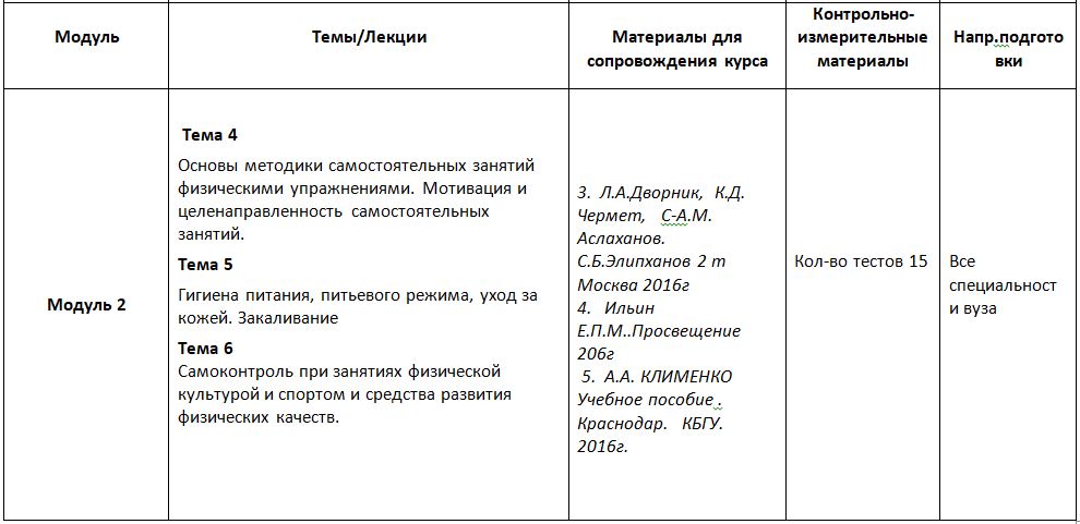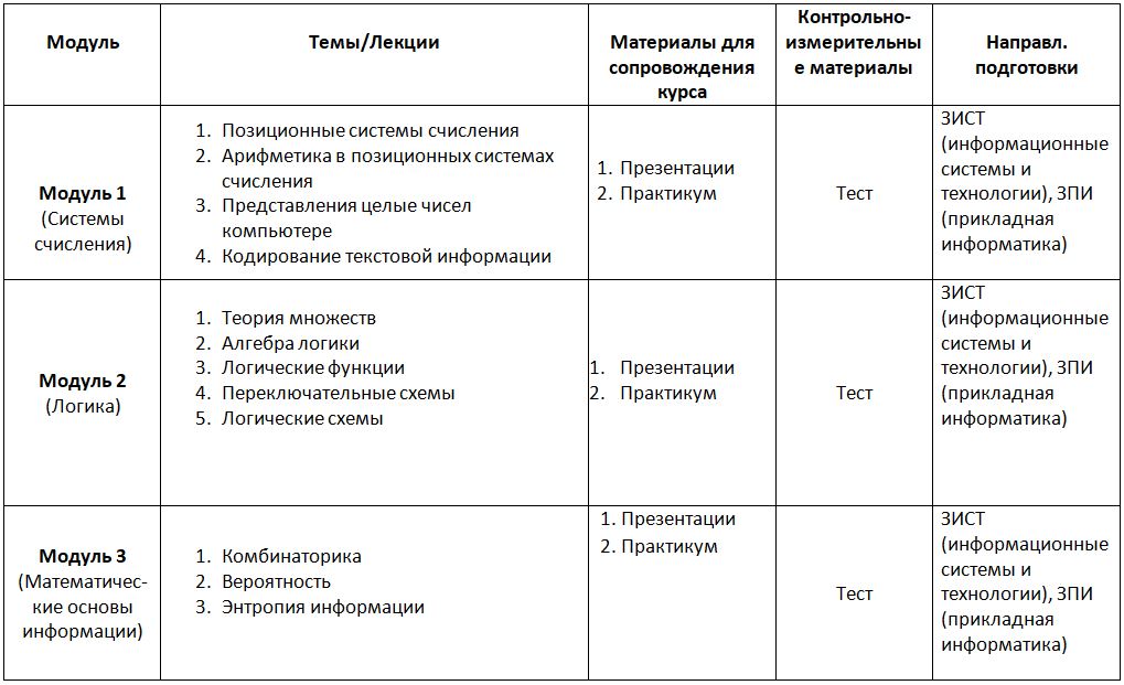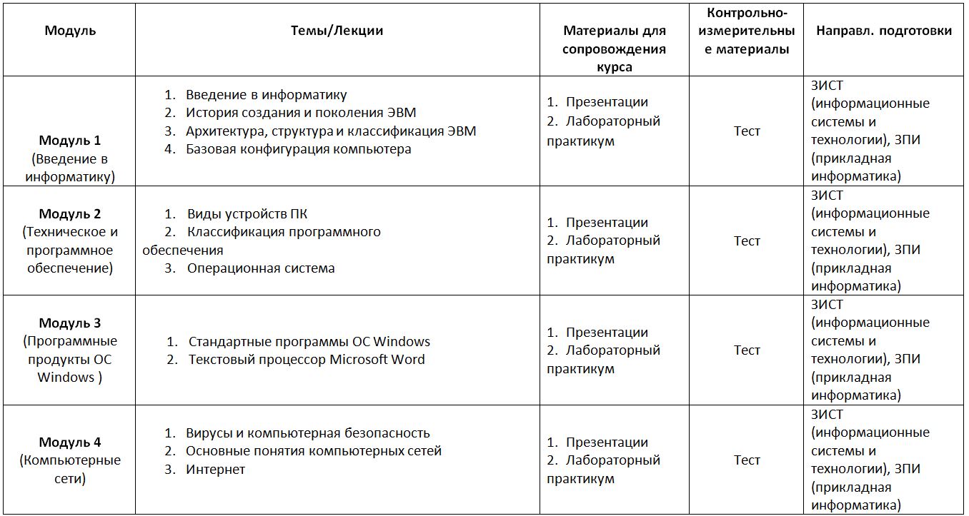 Количество тем/ лекций  в каждом модуле – 5; 4; 2.